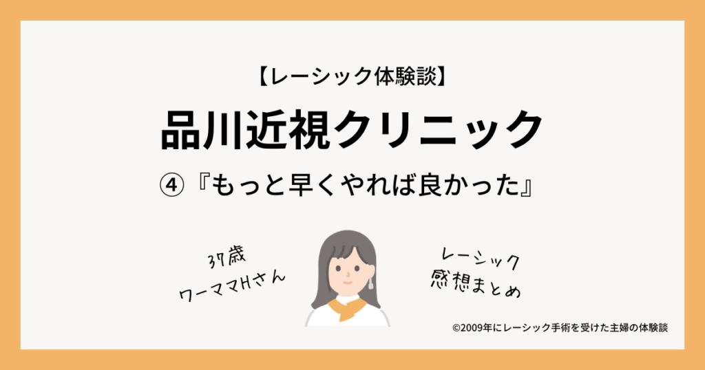 2021年に『品川近視クリニック』(東京院)でレーシック手術を受けた、1児のママ『Hさん』の体験談、最終回です!